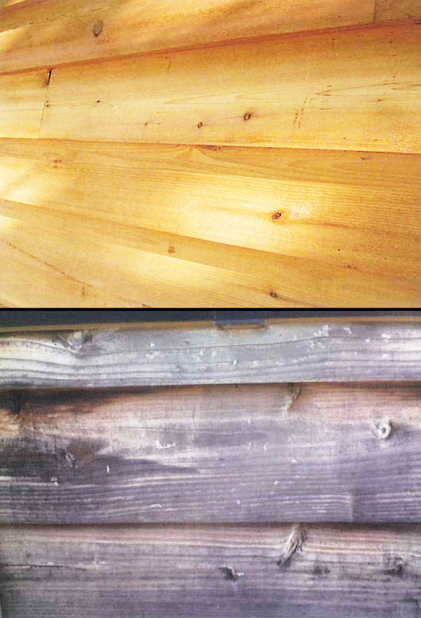 防水力が低下すると板が吸水し壁内が高湿度になり内外の湿度差により変形し、隙間から直接雨水が壁内に入り更に劣化を早め吸水乾燥、収縮を繰り返す事で板が腐食していく。 モルタルのように板が凍り割れる事もよく見受けられる。